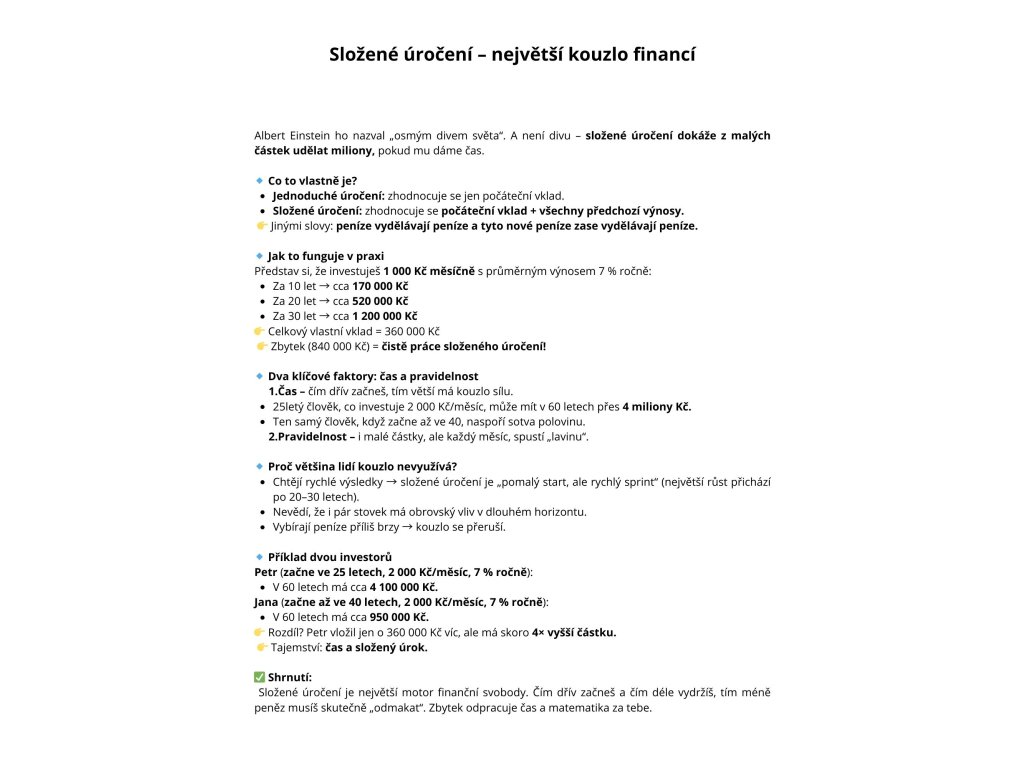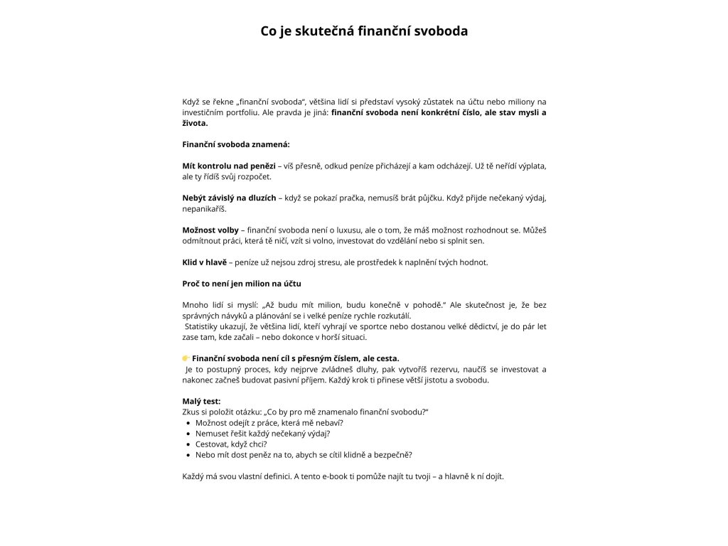 📈 Ať už začínáš od nuly, nebo chceš posunout své finance na vyšší úroveň, tento e-book ti ukáže cestu k finanční svobodě srozumitelně a prakticky – bez složitého žargonu.