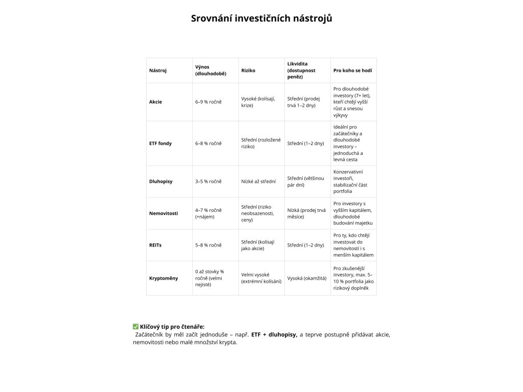 Kam investovat peníze: akcie, ETF fondy, dluhopisy, nemovitosti a kryptoměny.