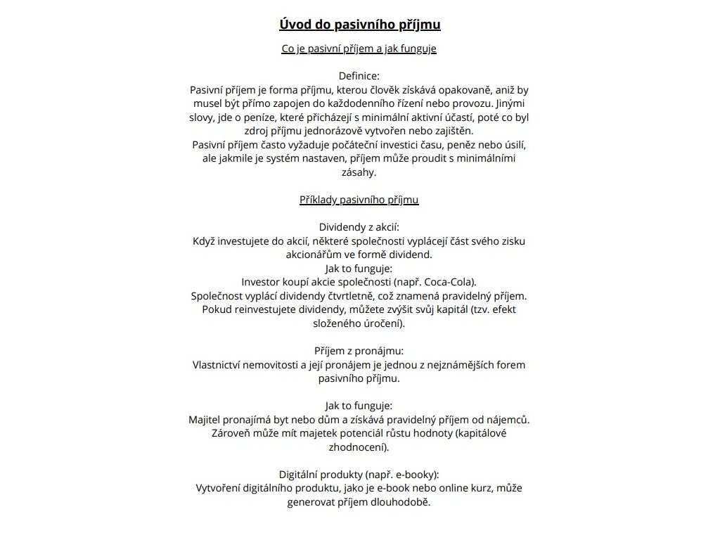 Protože pasivní příjem není sen pro vyvolené – je to strategie, která funguje, když víš, jak na to. Tento průvodce ti ukáže jednoduché, reálné a dosažitelné způsoby, jak si vytvořit stabilní tok příjmů.